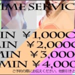 〇大好評だったあのイベントが帰ってきました! 気になる女の子を出勤一番で予約してくださったお客様には… 「タイム君割引」&「お時間プラス10分サービス」をつけてご案内いたします! 通常50分16,000円→60分15,000円! 通常70分20,000円→80分18,000円! 通常90分24,000円→100分21,000円! 通常120分30,000円→130分26,000円! 「フリーで出勤一番の子で!」というご予約の取り方も大歓迎です(=゚ω゚)ノ 出勤時間の1時間くらい前に「〇〇ちゃんの出勤一番空いてる!?」とか「出勤一番で行ける子いる!?」などとお尋ねください! 出勤一番で女の子の状態が最もいいときに楽しく遊びましょう(≧∇≦)/ ※本指名の女の子にはご利用ができませんのでご了承ください。