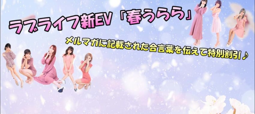 description [所沢川越店]新イベント「春うらら」開催!メルマガ内の合言葉を伝えるとお得に遊べます! bookmarkお店からのお知らせ access_time2 years ago2 years ago personスタッフラブライフ chat_bubble0 ラブライフで女の子の温もりを感じてください♪ 新イベント「春うらら」開催します!! いつもラブライフをご利用いただきありがとうございます! だんだんと春が近づいてきましたが、新しい素敵な出会いを探しているお客様、良い出会いはラブライフにあります! ぜひこの機会にラブライフをご利用ください♪ … View article...